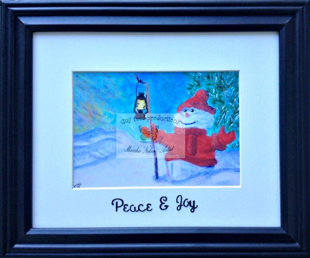 Snowman print wmrk Published December 29, 2015 at 1009 × 838 Peace and Joy © 2015 (framed, matted, titled)